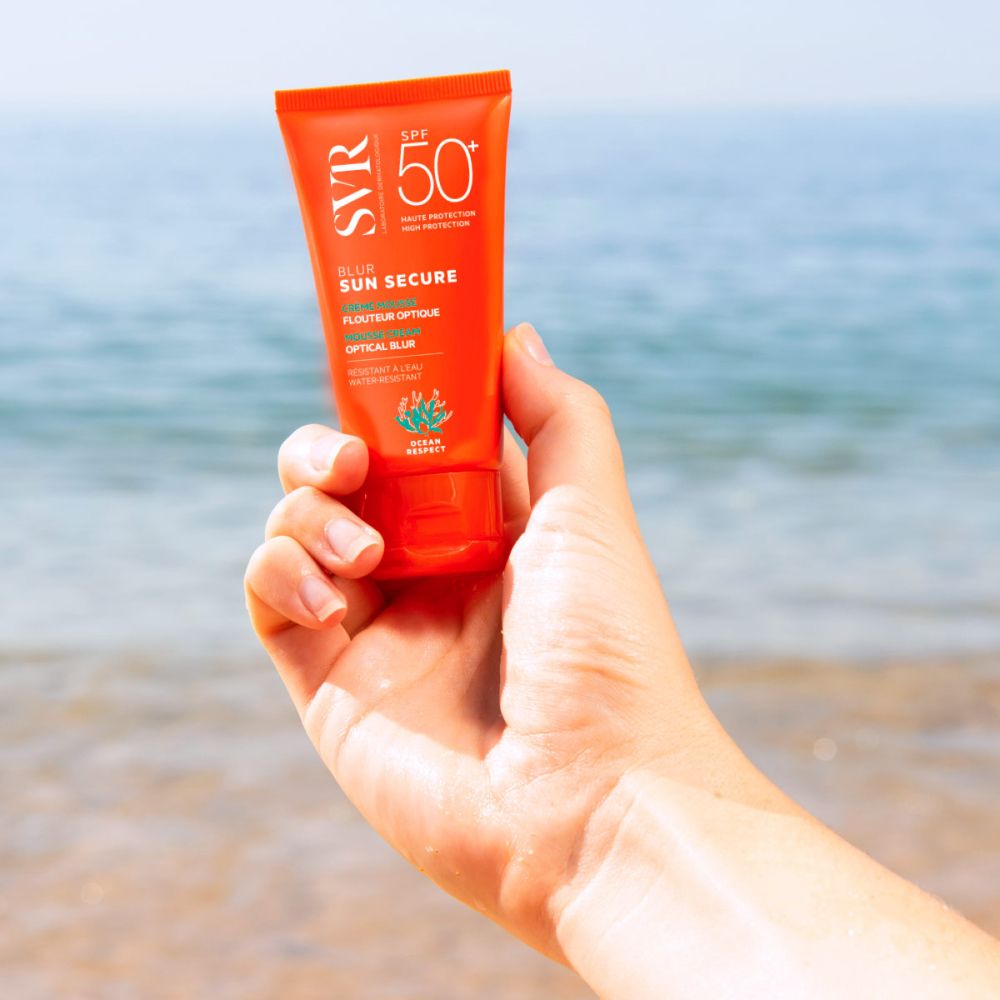SUN SECURE Crème SPF50+ offre une très haute protection dermatologique intégrant cette nouvelle association de filtre brevetée (1) respectueuse de l’environnement marin et des mécanismes endocriniens évalués (2).