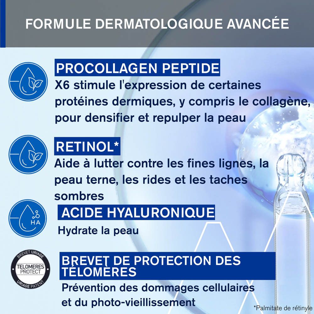 La peau paraît immédiatement repulpée. Jour après jour, il agit sur les 10 signes de l'âge : rides, relâchement, perte de fermeté, de volume, de densité et d’élasticité, sécheresse, manque d’éclat, taches***, manque de confort.