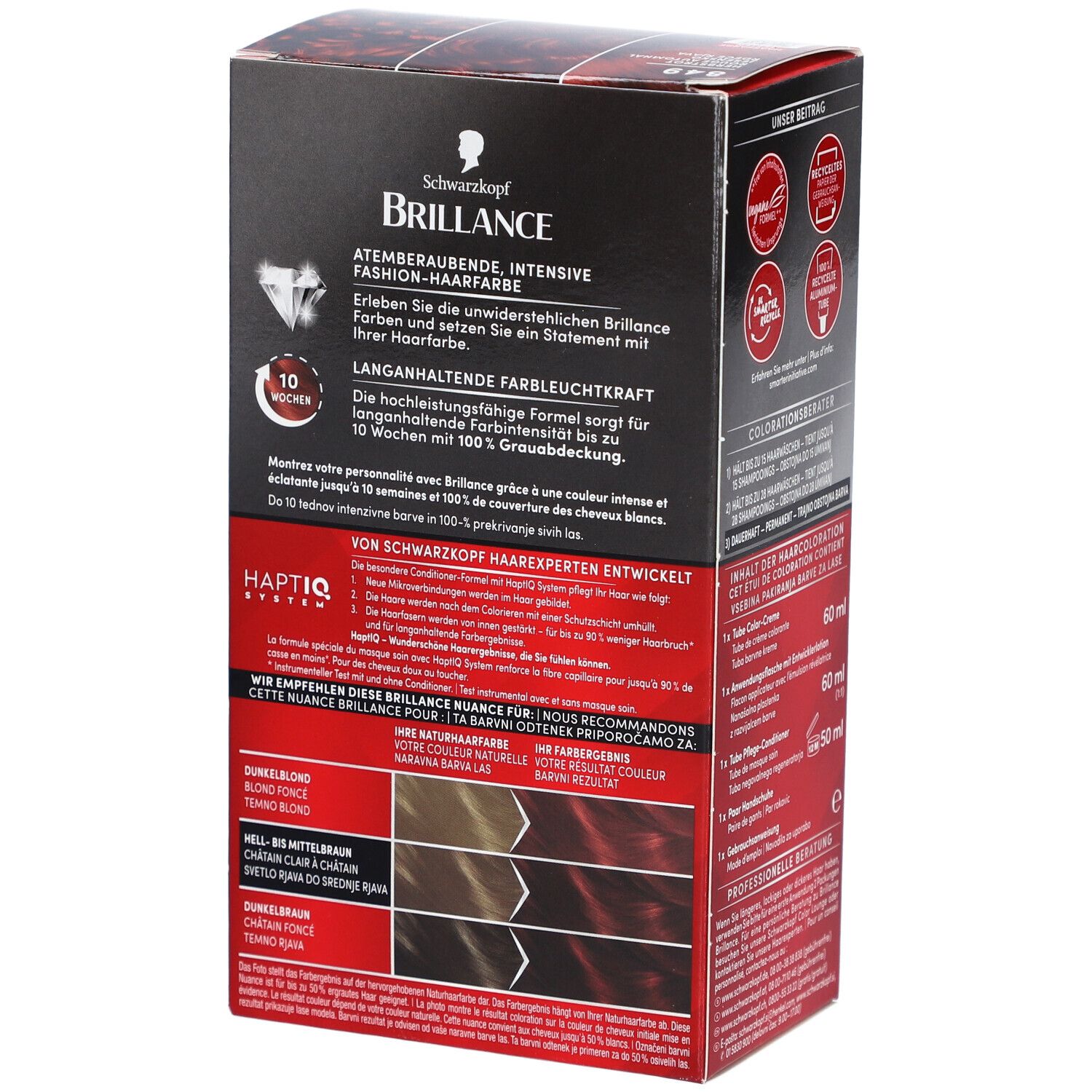 Grâce à l’expertise Schwarzkopf, Brillance vous offre des colorations de qualité professionnelle à domicile. La formule haute performance permet une intensité couleur longue durée et une couverture de 100% des cheveux blancs.