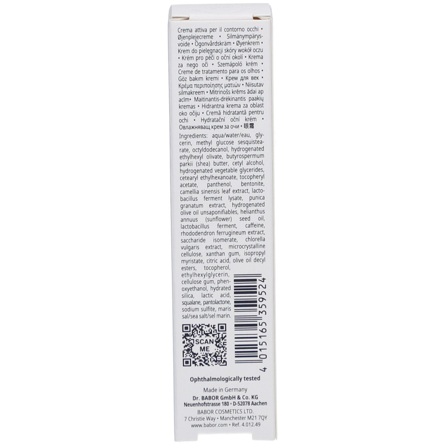 Un complexe d'agents actifs à base de grenade, de caféine, de thé vert et de probiotiques stimule les processus de renouvellement cutané et favorise la microcirculation des vaisseaux fins de la peau. Les cernes et les poches sous les yeux sont ainsi réduits. En inhibant la synthèse de mélanine autour des yeux, l'effet éclaircissant est encore renforcé par le complexe d'agents actifs et le regard paraît plus frais. En même temps, le contour des yeux est visuellement lissé grâce à une hydratation supplémentaire et les ridules de sécheresse sont réduites.