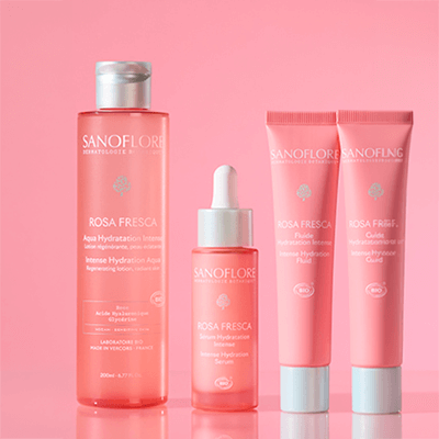 Les soins hautement hydratants de ROSA FRESCA sont créés à partir d’une rose d’exception, aux propriétés antioxydantes cliniquement prouvées : la Rose de Damas Bio provenant de la Vallée des Roses. Leurs formules, particulièrement adaptées aux peaux sèches, gorgent la peau d’eau botanique de Rose de Damas Bio et d’Acide Hyaluronique pour l’hydrater et la repulper tout en lui apportant de l’éclat.