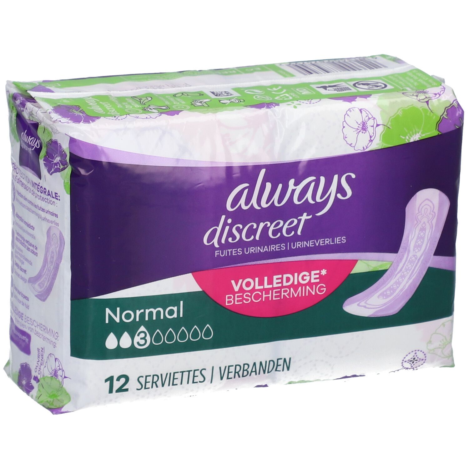 Les serviettes ALWAYS DISCREET normal pour fuites urinaires et incontinence vous offrent une excellente protection contre les fuites. Ces serviettes sont pour une excellente protection, tout en restant très fines et ultra confortables.