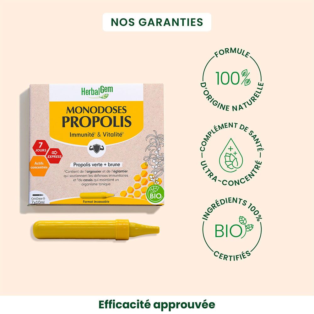 C’est normal, l’hiver est souvent synonyme de baisse d’énergie pour bon nombre d’entre nous ! Grâce à leurs actifs hautement dosés, les monodoses PROPOLIS vous aideront à booster vos défenses immunitaires tout en retrouvant votre forme, en seulement 7 jours. Chaque dose contient 145mg de propolis pure.