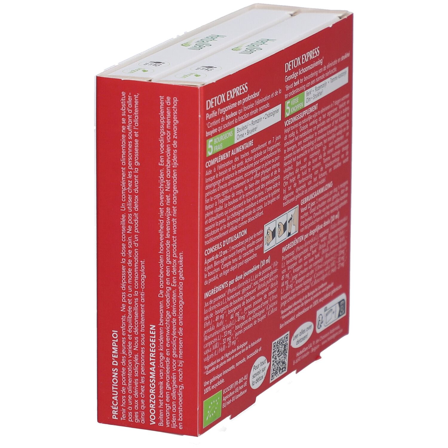 Grâce à sa formule 2,3X plus concentrée et 100% sans alcool, la cure DETOX EXPRESS soutient l’action drainante des 5 émonctoires du corps tout en relançant la dynamique générale du l'organisme*.