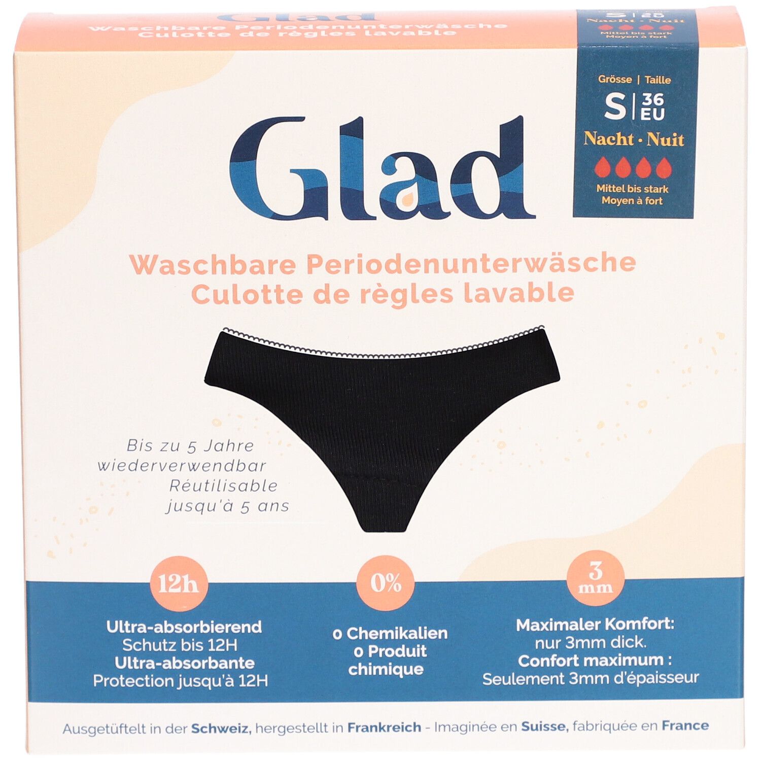 Culotte menstruelle de nuit, taille S, conçue pour une absorption renforcée pendant le sommeil. Grâce à son insert absorbant prolongé jusqu’aux fesses, elle offre une sécurité maximale contre les fuites nocturnes. Développée en Suisse, fabriquée en France à partir de coton bio et de matériaux certifiés Oeko-Tex®, sans substances chimiques.