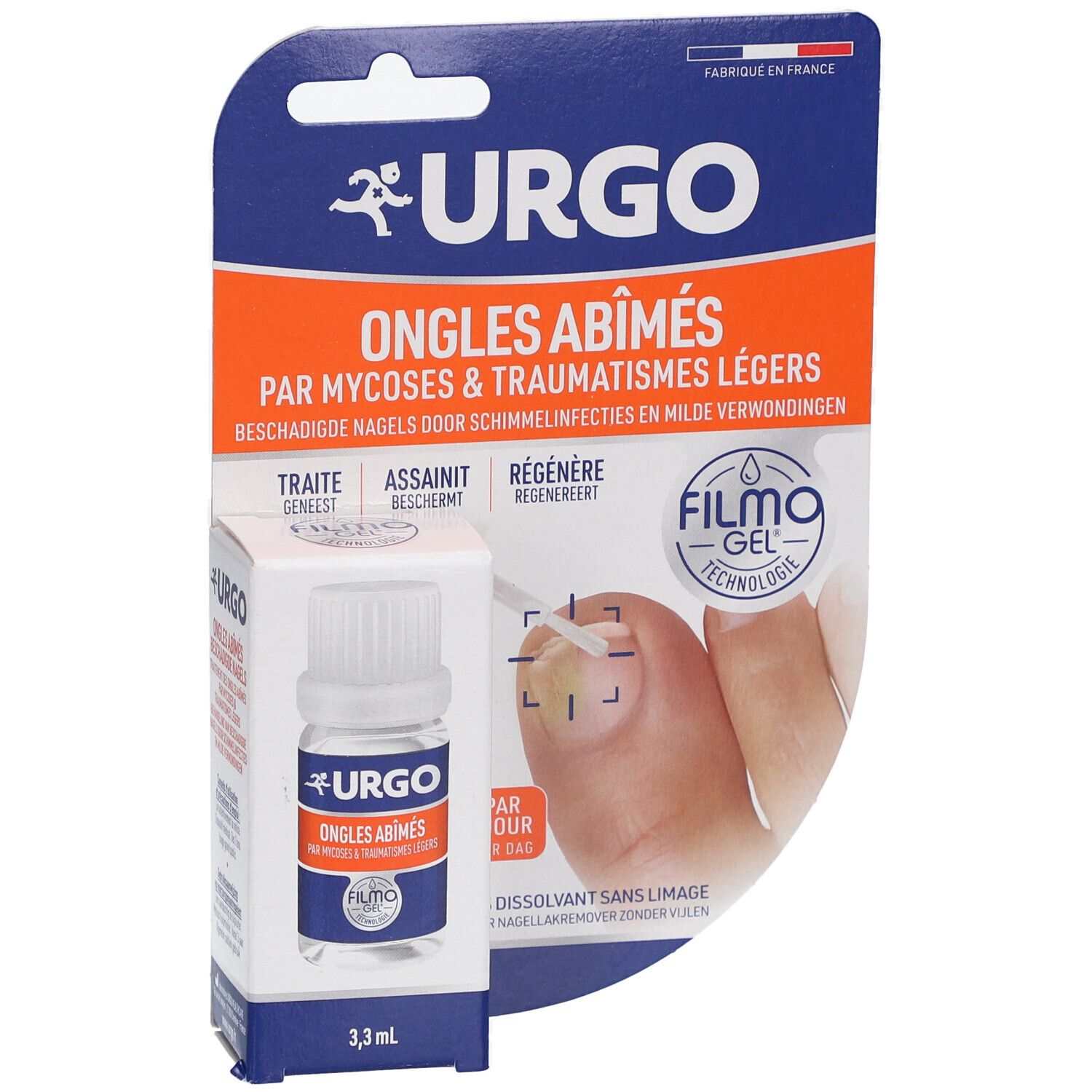 URGO Filmogel® Ongles Abîmés régénère et protège les ongles abîmés par une mycose ou un traumatisme. La présence d’hydroxypropylchitosan permet une action en profondeur (sur/dans l’ongle) pour le renforcer, l’assainir et le protéger. URGO Filmogel® Ongles Abîmés ,la solution idéale pour retrouver des ongles sains et beaux en toute simplicité.