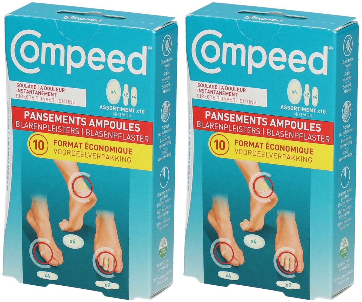 Le conditionnement Compeed® Ampoule Assortiment* est une solution complète pour les ampoules au niveau du pied comprenant nos modèles de pansements les plus vendus. Cette boîte comprend deux pansements Ampoules Moyen Format, deux pansements Ampoules Petit Format et deux pansements Ampoules Orteils. Idéal pour vous, votre famille et la trousse de premiers soins !