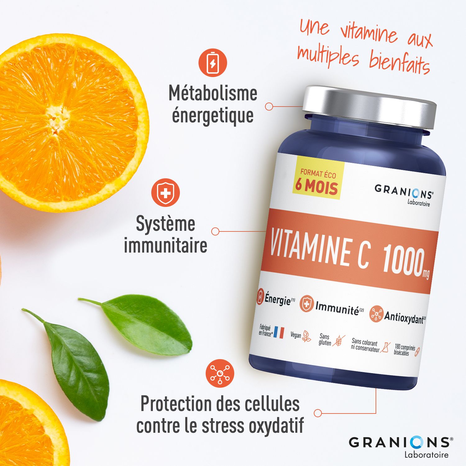 | Vitamine C | 500 mg (625 % AR*) | 1000 mg (1250 % AR*) |