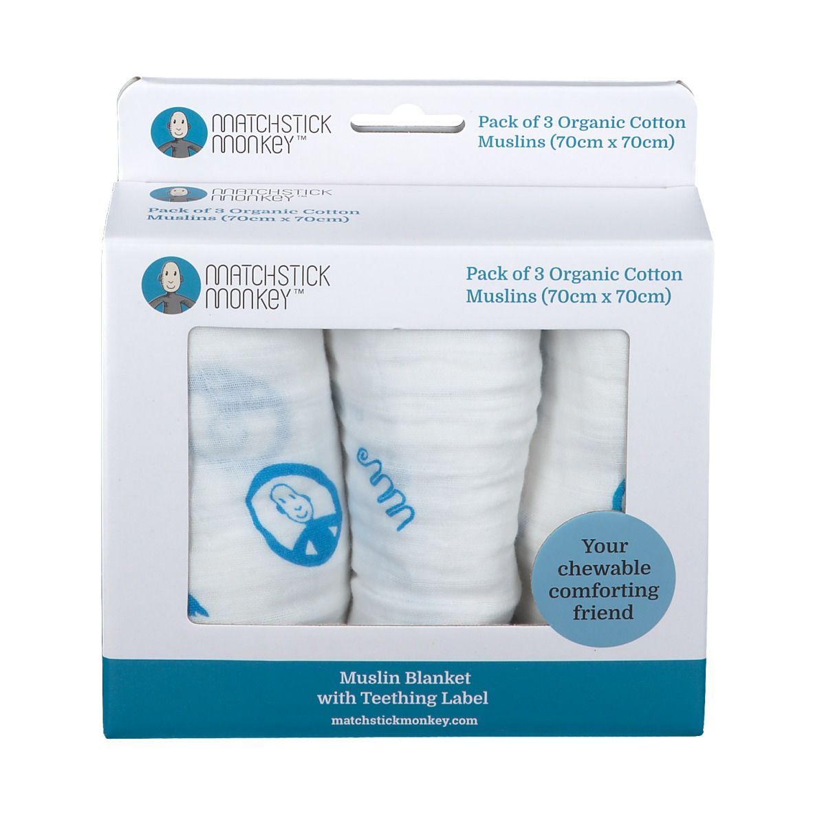 - Matchstick Monkey 100% coton bio mousseline x 3 Pack (70cm x 70cm)
