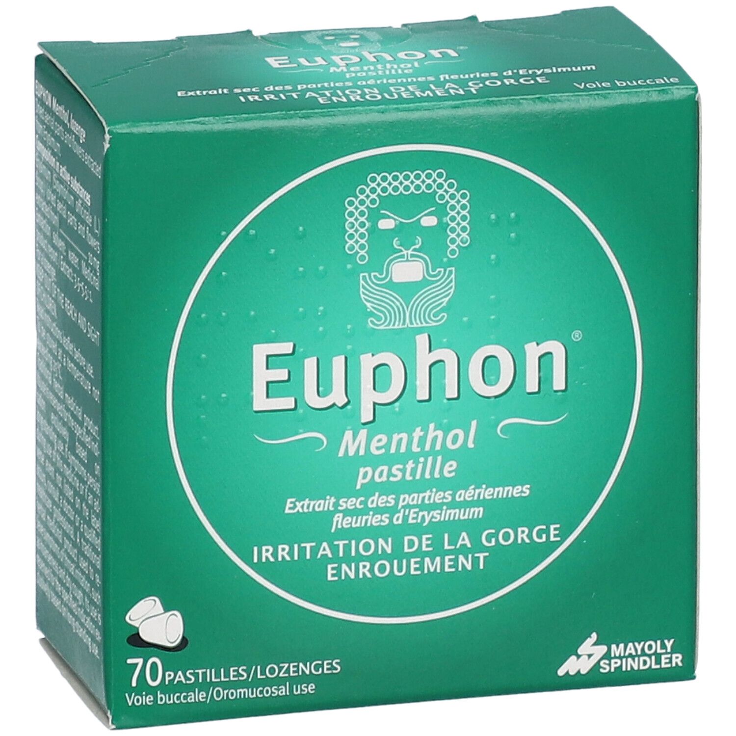 EUPHON MENTHOL, pastille est un médicament à base de plantes traditionnellement utilisé pour soulager les maux de gorge et/ou les enrouements passagers.