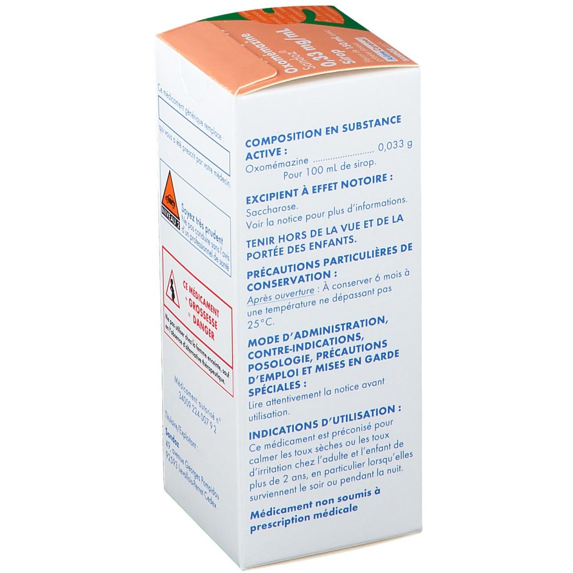 Faites attention avec OXOMEMAZINE SANDOZ 0,33 mg/ml, sirop: