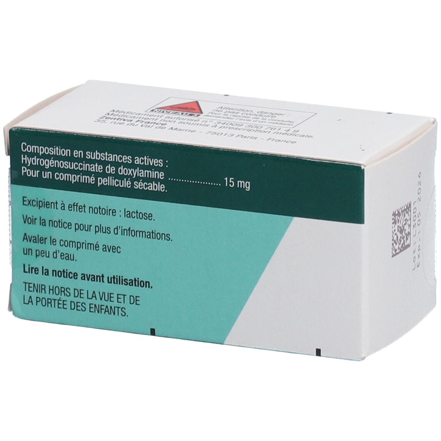 - 15 mg Doxylamine hydrogénosuccinate