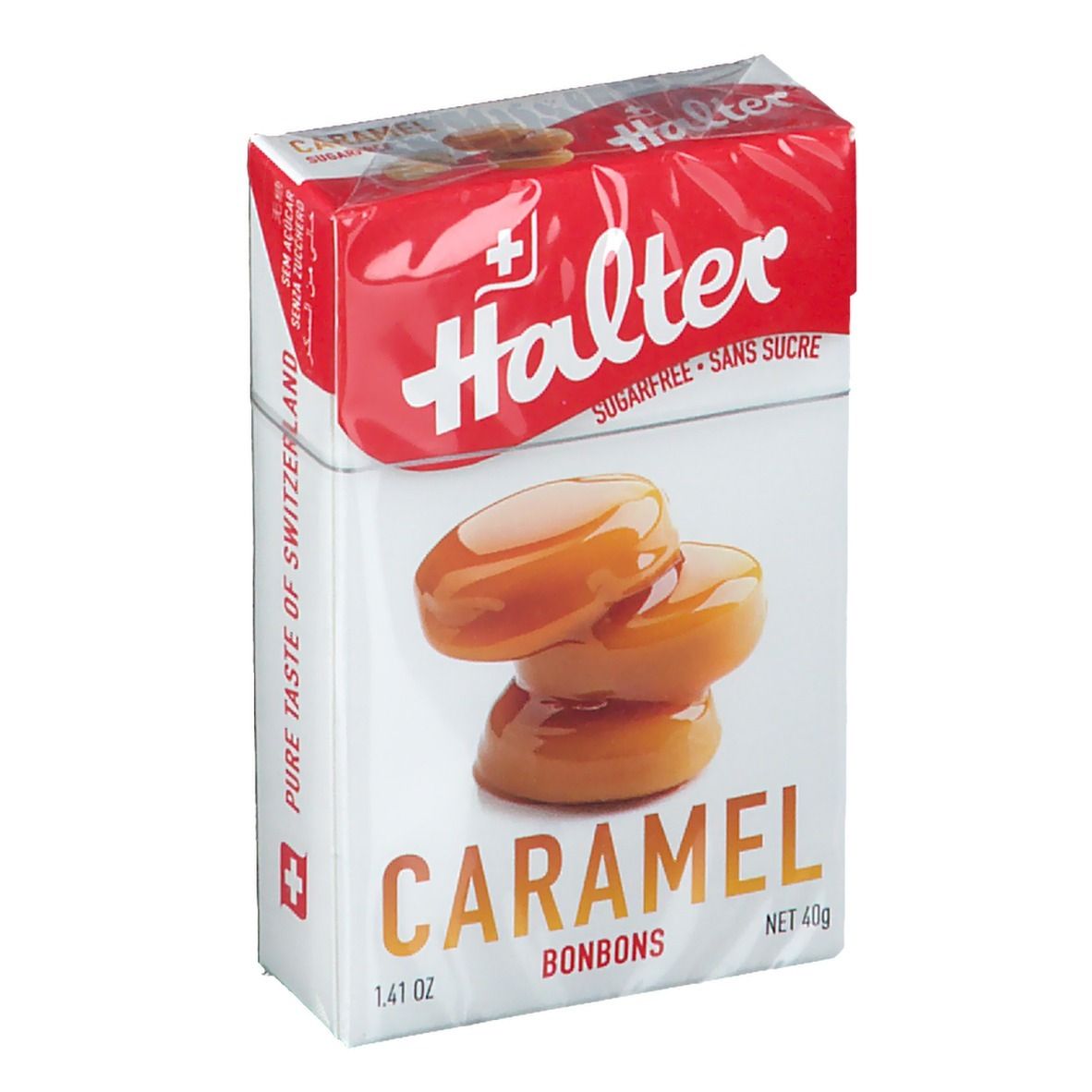 Bonbons au caramel de Halter : le goût envoûtant du caramel, sans sucre et sans complexes. Sans sucre, ils sont bons pour les dents et peuvent convenir aux personnes diabétiques.